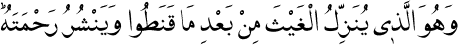 1 İnsanlar ümitsizliğe düştüklerinde yağmuru indiren ve rahmetini her tarafa yayan da Odur. O, kullarını gözetip koruyan ve her türlü övgüye lâyık olandır." Şûrâ Sûresi, 42:28.