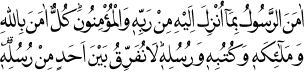 Peygamber, kendisine Rabbinden indirilen Kur’ân’ı tasdik edip ona îmân etti. Mü’minler de onunla beraber îmân ettiler. Onların hepsi Allah’a, meleklerine, kitaplarına ve peygamberlerine îmân etti. Onlar, ’Biz Allah’ın peygamberlerinden hiçbirini ayırmayız; birine inandığımız gibi hepsine de inanırız’ diyerek îmân getirdiler. Bakara Sûresi, 2:285.