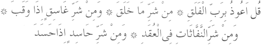 Haset ettiğinde hasetçinin şerrinden. Felâk Sûresi, 113:1-5.