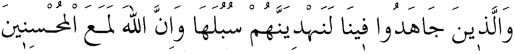 Meal-i Şerîfi: "Bizim uğrumuzda mücahede edenlere mutlaka yollarımızı gösteririz. Ve hiç şüphe yok ki, Allah muhsinlerle-Allah’ı görür gibi ibadet eden mücahidlerle-beraberdir. "