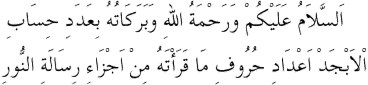 Allah’ın adıyla. "Hiçbir şey yoktur ki Onu övüp Onu tesbih etmesin." (İsrâ Sûresi, 17:44.) Risaletü’n-Nur eczâlarından okuduğunuz harf adedinin ebced hesabı sayısınca, Allah’ın selâmı, rahmeti ve bereketi üzerinize olsun.