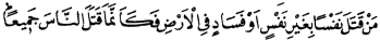 2 Kim bir cana kıymamış veya yeryüzünde fesat çıkarmamış birisini öldürürse, bütün insanları öldürmüş gibidir. (Maide Suresi :32.)