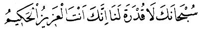 26. Arapça ibâre: Scni bütün noksan sıfatlardan tenzih edcriz. Biziııı hiçbir güç ve kuvvetimiz yoktur. Şüphesiz Sen sonsuz izzet ve hikmet sâhibisin.