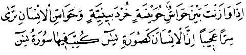 Arapça ibâre: Mikroskobik bir hayvancığın hisleri ile insanın duygularını karşılaştırırsan acayip bir sır görürsün. İnsan, içerisinde Yâsin Suresi yazılmış olan Yâsîn kelimesi gibidir.