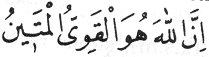 Arapça ibâre: Şüphesiz ki, Allah kuvvetli ve metânet sâhibidir.