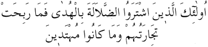 Yani: "Onlar, hidayeti verip dalaleti satın alan birtakım kafasızlardır ki, ticaretlerinden bir fayda görmedikleri gibi o zarardan kurtulmak için yol da bulamıyorlar."