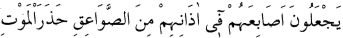 : Yolcular necatlarını intaç edecek hakiki sebepleri arayıp bulmaktan meyus olduktan sonra kulaklarını tıkamak gibi ca’li ve zanni şeylere müracaat etmek mecburiyetinde kaldıklarına işarettir.