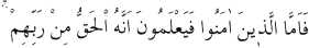 * İman edenler, onun Rablerinden gelen hak olduğunu bilirler.