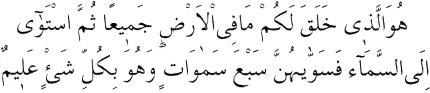 1 Yeryüzünde ne varsa sizin için O yarattı. Bundan başka semaya da iradesini yöneltti ve gökleri yedi tabaka olarak tanzim etti. O herşeyi hakkıyla bilendir. (Bakara Suresi: 29.)