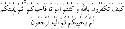 Yani, "Ne suretle Allah’ı inkar ediyorsunuz? Halbuki sizin hayatınız yoktu, O size hayatı verdi. Sonra sizi öldürecektir, sonra yine hayat verecektir, sonra ona rücu edip gideceksiniz."