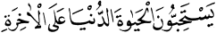 "Onlar dünya hayatını seve seve ahirete tercih ederler." İbrahim Sûresi, 14:3.