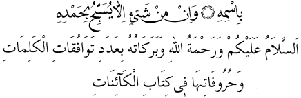 * Onun adıyla. "Hiçbir şey yoktur ki Onu övüp Onu tesbih etmesin." (İsrâ Sûresi, 17:44)