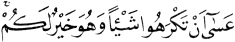"Belki sevmediğiniz şey hakkınızda hayırlıdır." Bakara Sûresi, 2:216.