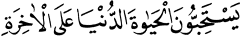 "Onlar dünya hayatını seve seve ahirete tercih ederler." İbrahim Sûresi, 14:3.
