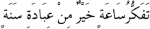 "Bir saat tefekkür, bir sene nafile ibadetten daha hayırlıdır." el-Aclûnî, Keşfü’l-Hafâ, 1:310; Gazâlî, İhyâu Ulûmi’d-Dîn, 4:409 (Kitabu’t-Tefekkür); el-Heysemî, Mecmeu’z-Zevâid, 1:78.