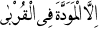 âyetinin bir kavle göre mânâsı: "Resul-i Ekrem Aleyhissalâtü Vesselâm, vazife-i risaletin icrasına mukabil ücret istemez; yalnız Âl-i Beytine meveddeti istiyor."