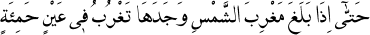 1 Nihayet gün batısına vardı ve güneşin harâretli ve çamurlu bir çeşme suyunda gurûb ettiğini gördü. (Kehf Süresi: 86.)
