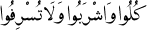 "Yiyin, için, fakat israf etmeyin." A’râf Sûresi, 7:31.