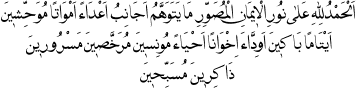bir kısmı müthiş cenazeler, diğer kısmı ise kimsesizlikten ağlayan yetimler suretinde, gafil nefsime tevehhümle gösterilen bu korkunç levhayı, nur-u imanla aynelyakin gördüm ki: O ecnebî, düşman görünenler birer dost, kardeştirler. Ve o müthiş cenazeler ise, kısmen hayattar ve ünsiyetkâr ve kısmen vazifeden terhis edilenlerdir. Ve o ağlayan yetimlerin vâveylâları ise, zikir ve tesbihin zemzemeleri olduğunu nur-u imanla gördüğümden, o hadsiz nimetlerin menbaı olan imanı bana veren Hâlık-ı Zülcelâle hadsiz hamd ediyorum. Ve bu dünyada, bu dünya kadar büyük, hususî dünyamdaki bütün mevcudatı, hamd ve tesbihât-ı İlâhiyede tasavvur ve niyetimle istimal etmek bir hakkım olduğu nokta-i nazarından, bütün o mevcudatın herbirisinin ve umumunun lisan-ı halleriyle beraber, "Elhamdü lillâhi alâ nûri’l-îmân deriz" demektir.