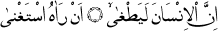 "Şüphesiz ki insan, kendisini ihtiyaçtan uzak görünce azgınlaşıverir." Alâk Sûresi, 96:6-7.