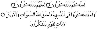 Düşünen bir topluluk için âyetler, deliller vardır. (Yunus Suresi: 24; Ra’d Suresi: 3; Nahl Suresi:11, 69; Rum Suresi: 21; Zümer Suresi: 42; Câsiye Suresi:13.)