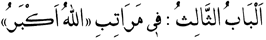 * Üçüncü Bãb: Allahü Ekber’in Mertebeleri.