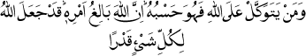 "Allah’a tevekkül edene Allah kâfidir. Allah emrini mutlaka gerçekleştirir. Allah herşeye bir ölçü takdir etmiştir." Talâk Sûresi, 65:3.