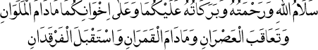 2 Gece ve gündüz devam ettikçe, devirler birbirini takip ettikçe, ay ve güneş durdukça iki kutup yıldızı karşılıklı bulundukça Allah’ın selâmı, rahmeti ve bereketi de siz ikinizin ve kardeşlerinizin üzerine olsun.