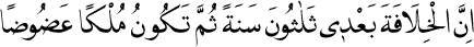 1 "Hilâfet benden sonra otuz sene sürecek, ondan sonra da saltanat şeklini alacaktır." Müsned, 5:220, 221.