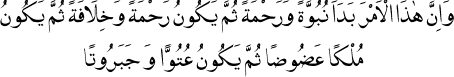 2 "Bu iş nübüvvet ve rahmetle başladı, sonra rahmet ve hilâfet halini alacak, sonra saltanat şekline girecek, sonra da ceberût ve fesâd-ı ümmet meydan alacak." Kadî İyâz, eş-Şifâ, 1:340; Müsned, 4:273.