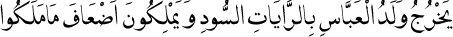 2 "Abbas’ın oğlu siyah bayraklarla zuhur eder ve uzun müddet saltanat sürerler." Kadı Iyâz, eş-Şifâ, 1:338; Müsned, 3:216-218; el-Hâkim, el-Müstedrek, 3:326.
