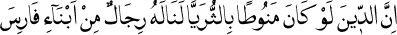 3 "Eğer din, Ülker Takımyıldızında bile olsaydı, Fars’tan bazı kimseler ona ulaşıp alabileceklerdi." Buharî, Tefsir: 62; Tirmizî, 47. sûrenin tefsiri: 3.