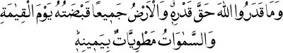 2 "Onlar Allah’ın kudret ve azametini hakkıyla bilemediler. Halbuki kıyamet gününde yeryüzü bütünüyle Onun tasarrufundadır; gökler de Onun kudretiyle dürülmüştür." Zümer Sûresi, 39:67.