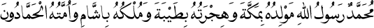 3 "Muhammed, Allah’ın Resulüdür. Mekke onun doğum yeri, Medine hicret yeri, Şam onun mülküdür. Ümmeti ise hamd edici kimselerdir."Dârîmî, Mukaddime: 2; Halebî, es-Sîretü’l-Halebiye, 1:346-351; Ali el-Kari, Şerhu’ş-Şifâ, 1:739; Nebhânî, Hüccetüllah ale’l-Âlemîn, 116; Ebû Naîm, Delâilü’n-Nübüvve, 1:72.
