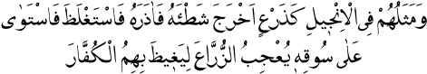 3 "Onların İncil’deki vasıfları da şöyledir: Filizini çıkarmış, sonra git gide kuvvet bulmuş, kalınlaşmış ve gövdesi üzerinde yükselmiş bir ekine benzerler ki, ekincilerin pek hoşuna gider. Allah’ın onları böylece çoğaltıp kuvvetlendirmesi, kâfirleri öfkeye boğmak içindir." Fetih Sûresi, 48:29.