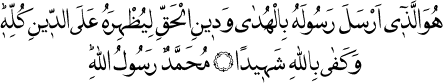 2 "Bütün dinlere üstün kılmak üzere Resulünü hidayet ve hak din ile gönderen Odur. Buna şahit olarak Allah yeter. Muhammed Allah’ın Resulüdür." Fetih Sûresi, 48:28-29.