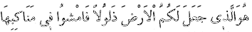 5 Üzerinde gezin diye yeryüzünü sizin emrinize veren Odur. (Mülk Sûresi:15.)
