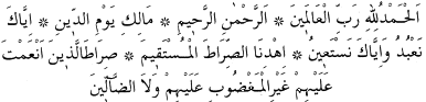 1 Rahmân ve Rahîm olan Allah’ın adıyla. · Ezelden ebede her türlü hamd ve övgü, şükür ve minnet, Âlemlerin Rabbi olan Allah’a mahsustur. · O Rahmân’dır; rahmeti bütün varlıkları kuşatır ve bütün yaratıklarının her türlü rızkını merhametle yetiştirir. O Rahim’dir yaratıklarına karşı pek şefkatli ve merhametlidir · O hesap gününün sahibidir. · Ancak Sana kulluk eder, ancak Senden yardım isteriz. · Bizi doğru yola ilet. · Kendilerine nîmet ve ihsanda bulunduğun peygamberlerinin ve onlara tâbî olan sâlih kullarının yoluna ilet azâbına uğrayanların ve sapıtmış olanların yoluna değil.