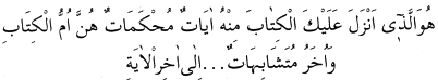 2 O Kur’ân’ın âyetlerinden bir kısmı hüküm ve mânâsı açıkça ve kolayca anlaşılan muhkem âyetlerdir ki, kitabın aslı ve anası bunlardır. Diğer bir kısmı da müteşâbih âyetlerdir... (ÃI-i imrân Süresi: 7.)