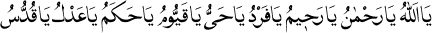 Yâ Allah, yâ Rahmân, yâ Rahim, yâ Ferd, yâ Hayy, yâ Kayyum, yâ Kuddüs!