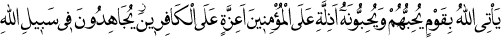 "Allah öyle bir topluluk getirecektir ki, Allah onları sever, onlar da Allah’ı sever. Onlar mü’minlere karşı alçak gönüllü, kâfirlere karşı izzet sahibidirler ve Allah yolunda cihad ederler." Mâide Sûresi, 5:54.