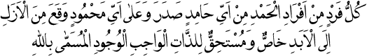 "Zât-ı Vâcibü’l-Vücud" kaydı ise, vücub-u vücud, ulûhiyetin lâzım-ı zarurîsi ve Zât-ı Zülcelâle karşı bir ünvan-ı mülâhaza olduğundan, lâfzullah sair esmâ ve sıfâta câmiiyeti ve İsm-i Âzam olduğu itibarıyla, delâlet-i iltizamiye ile delâlet ettiği gibi, "Vâcibü’l-Vücud" ünvanına dahi o delâlet-i iltizamiye ile delâlet ediyor.