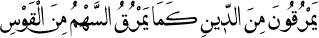 "Okun yaydan fırlaması gibi dinden çıkarlar." Buharî, Enbiyâ: 6; Menâkıb: 25; Meğâzî: 61; Fedâilü’l-Kur’ân: 36; Edeb: 95; Tevhid: 23, 57; İstitâbe: 95; Müslim, Zekât: 142-144, 147, 148, 154, 156, 159; Ebû Dâvud, Sünnet: 28; Tirmizî, Fiten: 24; Nesâî, Zekât: 79, Tahrîm: 26; İbni Mâce, Mukaddime: 12; Muvattâ’, Messü’l-Kur’ân: 10; Müsned, 1:88, 3:5, 4:145, 5:42.