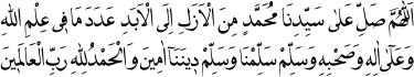 5 Allahım! Efendimiz Muhammed’e, âline ve ashabı-na, ezelden ebede kadar ilm-i İlâhîdeki mevcudatın adedince salât ve selâm et; bize ve dinimize selâmet ver. Âmin. Her türlü hamd ve övgü, Âlemlerin Rabbi olan Allah’a mahsustur.