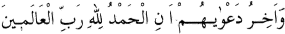 "Onların duaları şu sözlerle sona erer: ’Ezelden ebede her türlü hamd ve övgü, şükür ve minnet, Âlemlerin Rabbi olan Allah’a mahsustur." Yunus Suresi, 10:10.