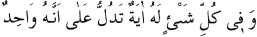 3 "Herbir şeyde, Onun bir olduğuna delalet eden bir ayet vardır." İbnü’l-Mu’tez’in bir şiirinden alınmıştır. İbn-i Kesir, Tefsirü’l-Kur’ani’l-Azim, 1:24.