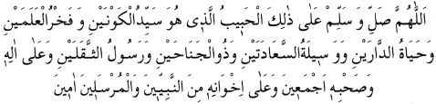2 Allahım, her iki dünyanın efendisi, iki alemin medar-ı fahri, dünya ve ahiretin hayatı, iki cihan saadetinin vesilesi, zülcenaheyn ve cin ve insin resulü olan şu Habibine, onun bütün al ve ashabına ve onun enbiya ve mürselin kardeşlerine salat ve selam et. Âmin.
