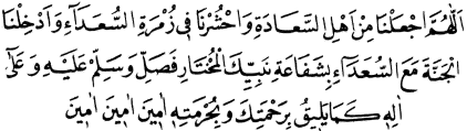 Allah’ım, bizi saadet ehlinden kıl, Said’ler zümresinde haşret ve Said’lerle beraber, Nebiyy-i Muhtarının şefaatiyle Cennete ithal et. Ona ve Âline de, Senin rahmetine ve onun hürmetine layık şekilde salat ve selam et. Âmin, amin, amin.