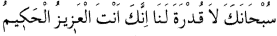 2 Sen her türlü noksandan münezzeh ve uzaksın. Bizim hiç bir kudretimiz yoktur. şüphesiz ki Sen Azizsin, Senin kudretin herşeye galiptir; Hakimsin, Senin her işin hikmet iledir.