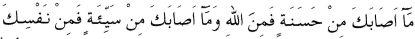 3 "Sana her ne iyilik erişirse Allah’tandır. Sana her ne kötülük gelirse, o da hendi nefsindendir."Nisa Süresi, 4:79.